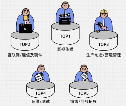 对下班时间不满意的行业Top 5: