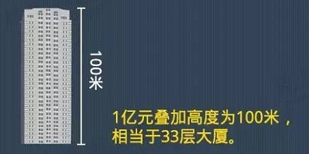 如果以单张堆叠,高度可以达到 100 米,相当于 33 层大厦。