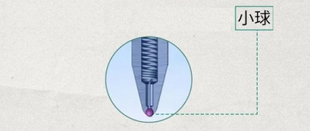 这个小球就是圆珠笔写字的关键,笔尖按在纸上小球转动,就会带动墨水流出,于是就写出字了,当笔脱离纸面时,小球又会堵住里面的墨水不流出来。
