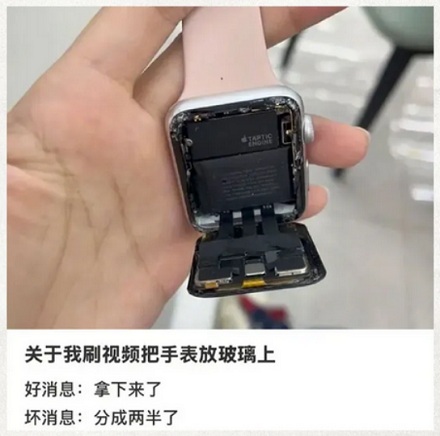 手表就这样粘住了……不过,「手欠贴手表」这事儿也不难解决——