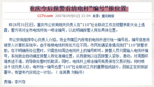 其实这一串串代码在当地公安局或者电力局的计算机系统上,都能查询得到,它暗含了这个电线杆或路灯杆的精确坐标。