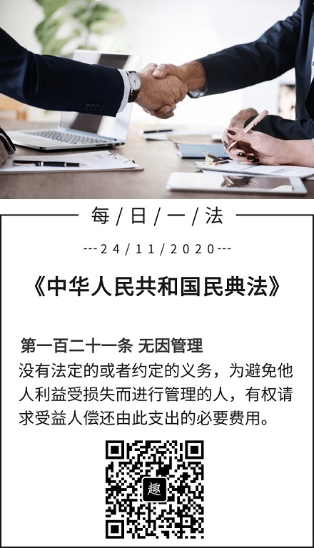 第一百二十一条 无因管理没有法定的或者约定的义务,为避免他人利益受损失而进行管理的人,有权请求受益人偿还由此支出的必要费用。