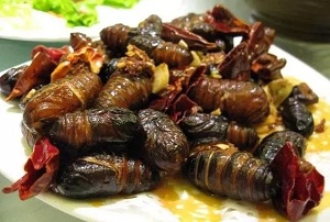 东北的烧烤饭桌上常见一盘烤蚕蛹